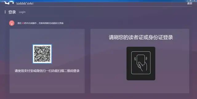 支持多种读者认证登录方式,读者证登录、身份证登录、人脸识别登录、二维码登录。